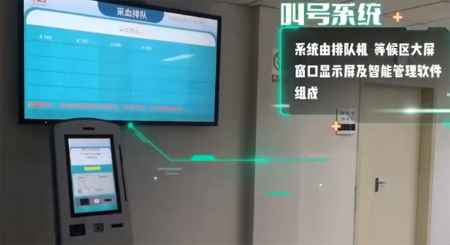 等候區(qū)大屏幕窗口,顯示屏和只能管理軟件組成。病患可以通過(guò)身份證、就診卡、手機(jī)APP二維碼、社??ǖ鹊确绞健叽a刷卡進(jìn)入排隊(duì)序列,空腹等特殊項(xiàng)目也可以設(shè)置個(gè)性化彈窗服務(wù)。病患根據(jù)語(yǔ)音內(nèi)容到指定窗口采血。排隊(duì)規(guī)則也可以自定義設(shè)置。實(shí)現(xiàn)高效人性化排隊(duì)機(jī)制。