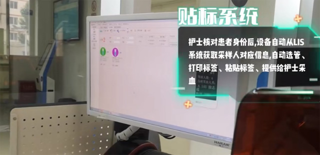 醫(yī)護(hù)人員核對(duì)患者的身份信息,設(shè)備自動(dòng)獲取采樣人對(duì)應(yīng)信息,自動(dòng)選管,打印標(biāo)簽、粘貼標(biāo)簽,提供給醫(yī)護(hù)人員采血。選管、貼標(biāo)、打條碼、出管,護(hù)士只需要做消毒扎針工作就可以了。選擇對(duì)應(yīng)顏色的采血管邊打印對(duì)應(yīng)標(biāo)簽,保留原有的刻度線(xiàn)進(jìn)行貼標(biāo)粘貼。自動(dòng)復(fù)核提供給醫(yī)護(hù)人員使用。醫(yī)護(hù)人員取管確認(rèn)信息后進(jìn)行采血操作,將采完血的樣本放入傳輸系統(tǒng)里面。