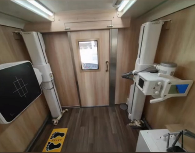 有時(shí)候胸口不舒服,腰不好怎么辦呢?車載DR可以實(shí)現(xiàn)就地檢查,不需要到醫(yī)院拍胸片進(jìn)行DR超聲檢查。大家能在醫(yī)院完成的體檢項(xiàng)目,都可以實(shí)現(xiàn)。醫(yī)生通過外面的電腦,打開和控制設(shè)備。DR會根據(jù)檢查者的身高體型,自動判斷位置移動到檢查的區(qū)域。自動成像,并且在服務(wù)器里面記錄相應(yīng)的數(shù)據(jù)。效率也非常高,當(dāng)天檢查就能當(dāng)天出結(jié)果??梢詽M足突發(fā)事件中傷病員的頸椎、胸椎、腰椎、四肢骨骼、胸部、骨盆、各個關(guān)節(jié)全身的數(shù)字化DR檢查需求。