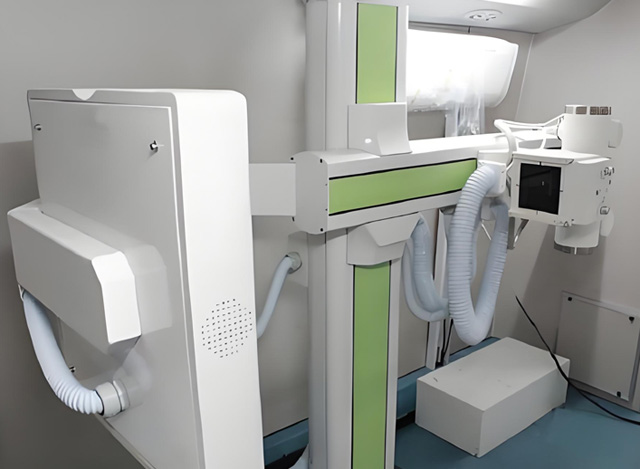 首先按下綠色的電源開關(guān)按鍵,整個車載DR設(shè)備就會通電。再按下高壓發(fā)生器的開機(jī)鍵,然后電腦主機(jī)也開機(jī)運(yùn)行。打開DR工作站系統(tǒng),它開機(jī)的話有一個過程,需要幾分鐘時間,DR室門口有門開關(guān)跟當(dāng)心電離輻射提醒標(biāo)志。檢查室里面有按鈕可以把設(shè)備調(diào)高調(diào)低,檢查時候這個手背著臀部上一點點,反向胸部靠著DR,通過升降來調(diào)整擺位的一個狀態(tài)。還可以通過搖把來調(diào)整探測器跟球管的高度。還有線束器的一個調(diào)節(jié)。我們一般拍胸片的話,一般不用管這個操作。 一般出廠設(shè)置跳到了一個合適的范圍了。控制平臺也是可以控制開關(guān)門,并不需要按門口的按鍵。