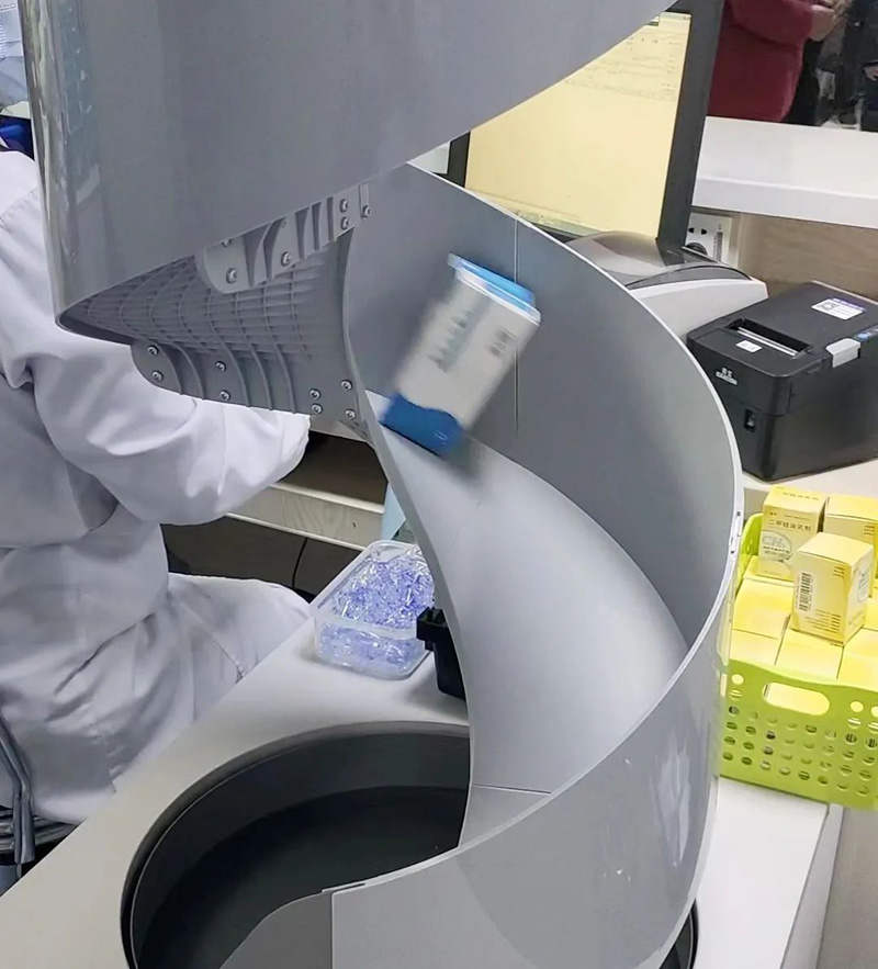 隨著人工智能的發(fā)展,以質(zhì)量為核心、以病人為中心”的服務(wù)理念。提高醫(yī)療服務(wù)質(zhì)量,改善群眾就醫(yī)體驗(yàn),醫(yī)院都紛紛上線智慧藥房。發(fā)藥機(jī)投入使用讓病患享受到更加便捷的藥學(xué)服務(wù)。發(fā)藥機(jī)從外形看,就像是大型自動售貨機(jī),解決了人工發(fā)藥取藥調(diào)配差錯率高、沒有過程記錄環(huán)節(jié)、患者等待時間長等缺點(diǎn),緩解了高峰期配藥壓力。發(fā)藥機(jī)系統(tǒng)還會自動鎖定過期藥品功能強(qiáng)大,發(fā)藥機(jī)內(nèi)部溫度恒溫,有藥品缺藥的提示功能,系統(tǒng)就會按照處方的內(nèi)容自動調(diào)配藥品,可以及時的補(bǔ)充藥品。實(shí)現(xiàn)實(shí)時監(jiān)控。這樣讓病患可以得到用藥需求。藥品充足就不會讓病人久等。最后把調(diào)配好的藥品通過傳輸帶輸送到發(fā)藥窗口。提高了效率將簡單繁重機(jī)械重復(fù)式的工作交給智能發(fā)藥機(jī)完成。配合具有108存儲位的智能調(diào)配機(jī)和78種藥品拆零的分包機(jī),系統(tǒng)全天能達(dá)到6000張?zhí)幏教幚砟芰?,確實(shí)能緩解高峰期配藥壓力。真正實(shí)現(xiàn)了藥品調(diào)配的全流程智能化操作。為患者的用藥安全提供了有力的保障。