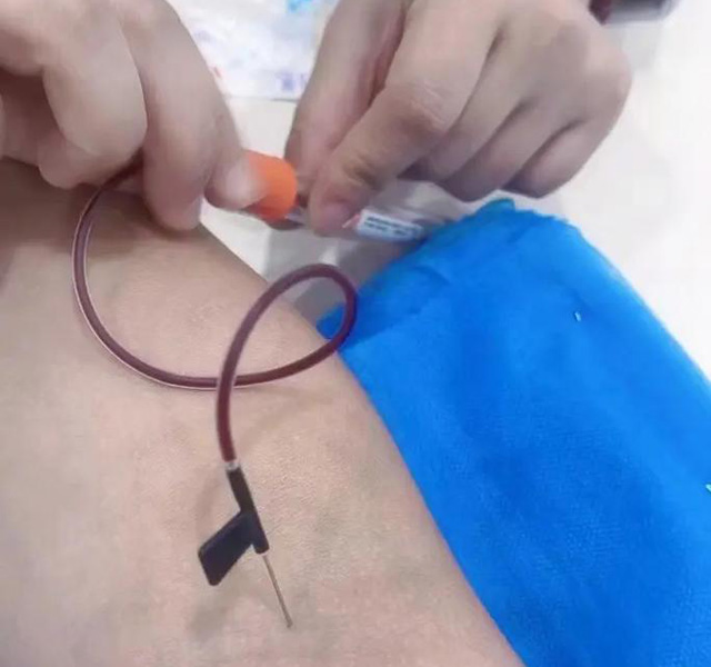 血管帶一定要扎緊,血管才會充盈。然后握拳可以看到血管。血管扁的不明顯的話就輕輕的拍一下。不需要用力的打這樣可以清晰的看到血管。血管比較細(xì)的話。扎血管的地方消毒兩次,采血針打開后??吹降膬深^都是針,針的一頭插進(jìn)血管,另外一頭插到管引血液。血液抽的差不多時候就用大拇指頂著管頭。血就流不出來了。然后解開止血帶,取一根干棉簽。然后把管的針拔出來就可以了。進(jìn)針角度大時候不疼但容易漏針,進(jìn)針角度小時候有點疼不容易漏針。進(jìn)針的角度為15度-30度不容易漏針也不疼。