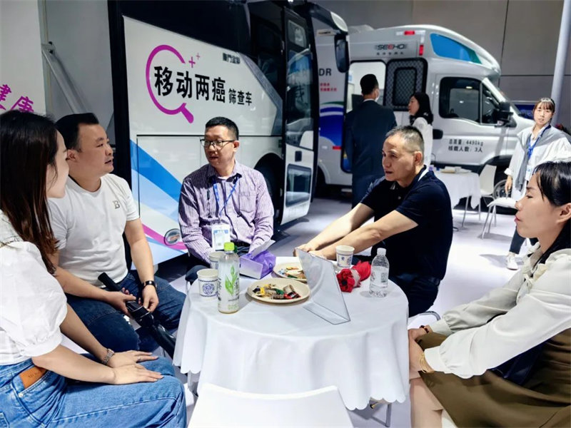 2臺移動兩癌篩查車、車載全體位DR在現(xiàn)場吸引了大量眼球,紛紛駐足停留,上車參觀洽談。