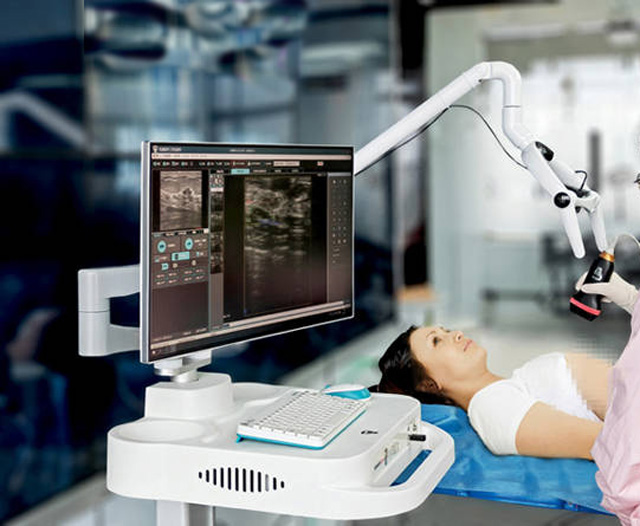 乳腺超聲設(shè)備自動乳腺超聲診斷,超聲技術(shù)讓廣大女性有舒適快速的乳腺超聲檢查。檢查開始的時候,首先在乳腺超聲設(shè)備的工作列表輸入患者的信息,簡單直觀的軟件操作界面可以快速的輸入受檢人信息。并且選擇適當(dāng)?shù)膾呙枭疃群蛼呙桧樞?。取仰臥位海綿墊放在后背和臀部下面。并且在肩膀后面放枕頭幫助定位。固定成檢查有利姿勢,有助于乳頭朝向天花板。使乳腺組織均勻分布,正常的擺位是高質(zhì)量,可回顧性檢查的必要條件。