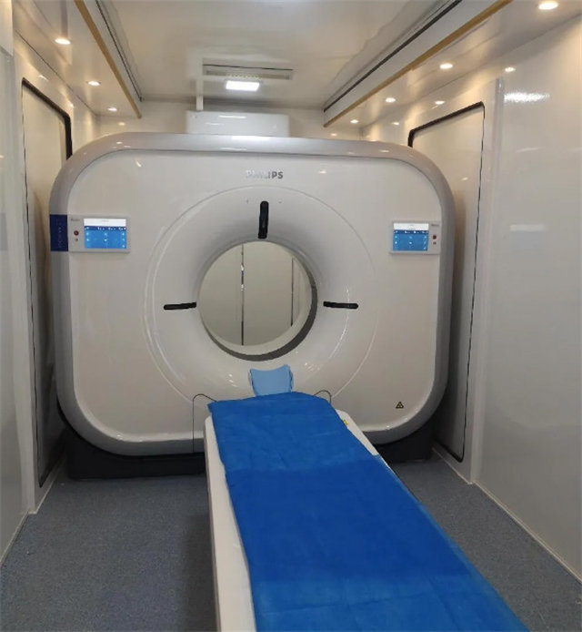 提升醫(yī)療服務(wù)質(zhì)量,醫(yī)院改善體檢就醫(yī)體驗。移動CT體檢車投入使用,采用了移動CT高端設(shè)備,精準(zhǔn)體檢檢查,移動服務(wù)。這個相當(dāng)是個移動的CT檢查室。可以開到需要的地方進(jìn)行CT檢查,大大緩解醫(yī)院壓力,特別是可以解決檢查人數(shù)多,等待時間長的問題。移動機動性可以深入到各個地方,開展義診,科普,檢查等醫(yī)療檢查服務(wù)。讓大家在附近就可以享受到高端的CT檢查。