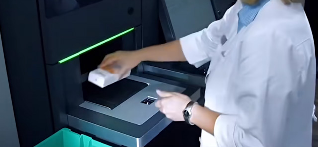 發(fā)藥機(jī)最快可以8秒完成配藥。高峰時候可以2秒發(fā)出一盒藥。一張?zhí)幏揭?盒藥品計算只需要8-12秒就可以配齊。大大的提高了發(fā)藥效率。發(fā)藥機(jī)還有自動鎖定功能,還可自動識別過期的藥品。過期藥品將不予發(fā)放,當(dāng)缺少部分藥品時候,后臺將藥品傳輸?shù)胶笈_藥劑師人工添加好后再傳輸?shù)角芭_。很多人講這個不就是一個機(jī)械臂嗎?可以進(jìn)行掃描取貨??匆暫醪浑y,其實還是有很高的技術(shù)含量的。
