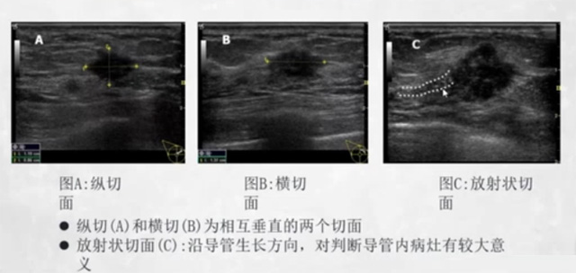 乳腺DR檢查乳腺的縱切和橫切為相互垂直的兩個切面,放射狀切面,也就是以乳頭為中心來進行一個掃查,為什么要強調(diào)放射狀切面呢?可以看到病灶是沿著導管方向的。沿導管生長方向,對判斷導管內(nèi)病灶有較大的臨床意義。檢查留圖要有橫縱切面,放射狀切面。乳腺病灶的定位有兩種方法,一種是以乳頭為中心,經(jīng)過乳頭水平線與垂直線,將乳房分為4個象限,外上下象限,內(nèi)上下象限。另外一種是時鐘定位法,以乳頭為中心,采用12小時鐘點制,病變距乳頭的距離。