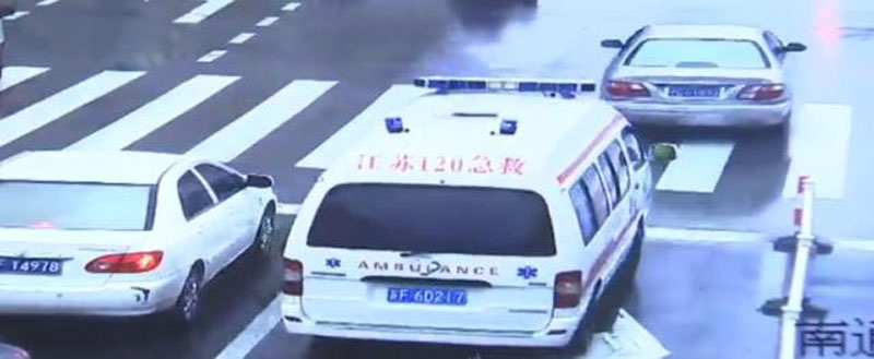 電影情節(jié)在道路上出現(xiàn)了,一路綠燈讓救護車通行