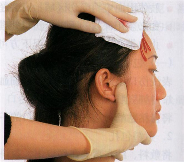 (1)頭頂出血用手指壓迫傷口同側(cè)耳前方顳淺動(dòng)脈搏動(dòng)點(diǎn)。