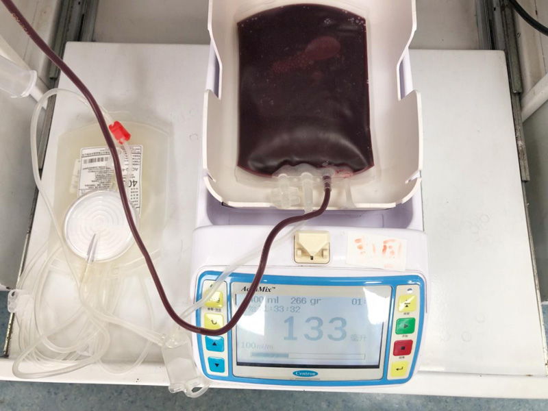 首先獻(xiàn)血時(shí)候?qū)ρ旱某醮魏Y選,采集無名指的血,是因?yàn)闊o名指一是滑液囊不向手掌深部延伸;大拇指跟小指頭的肌腱活動范圍廣,發(fā)生感染的話炎癥會范圍大。無名指在五指中不如其他手指的的功能大,所以都在無名指上采血。還有采血過程中,獻(xiàn)血屋的工作人員會在手臂位置綁著一條白色的帶子。這個(gè)叫壓脈帶,一次性止血帶。采血過程中一直綁著壓脈帶是有助于減緩血液回流心臟的速度,采血得到順暢效果。獻(xiàn)血時(shí)候血袋在采血稱上面不停的搖擺,是因?yàn)檠镉锌鼓齽?。采血時(shí)候如果不用這個(gè)措施血液會發(fā)生凝固效果,采血稱一定頻率不停搖擺,使抗凝劑與血液充分混合,從而達(dá)到使血液不凝固的目的。還有在采血過程中還有三個(gè)試管。采集好的血液會送往血站的成分供儲科進(jìn)行分離制備,為最大程度確保每一袋血液是安全的,而試管則會被送到成分檢測科進(jìn)行血液檢測。血站要對所有采集回來的血液標(biāo)本進(jìn)行丙氨酸氨基轉(zhuǎn)移酶(ALT)、血型檢測、乙型肝炎病毒、丙型肝炎病毒、獲得性人類免疫缺陷病毒(HIV)、梅毒螺旋體檢測。每個(gè)血袋都有條形碼,標(biāo)識以及可追溯性。同一獻(xiàn)血碼至少在50年內(nèi)不得重復(fù)。