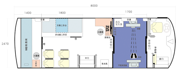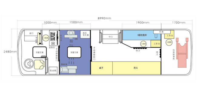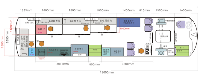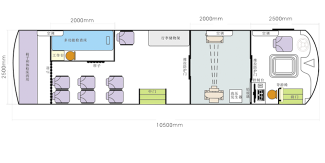 車載DR體檢車功能卻很齊全,車上配裝X光機(jī)、心電超聲檢查、電測(cè)聽室、全自動(dòng)生化分析儀以及檢查床、冰柜、空調(diào)和紫外線消毒燈等先進(jìn)醫(yī)療儀器設(shè)備。